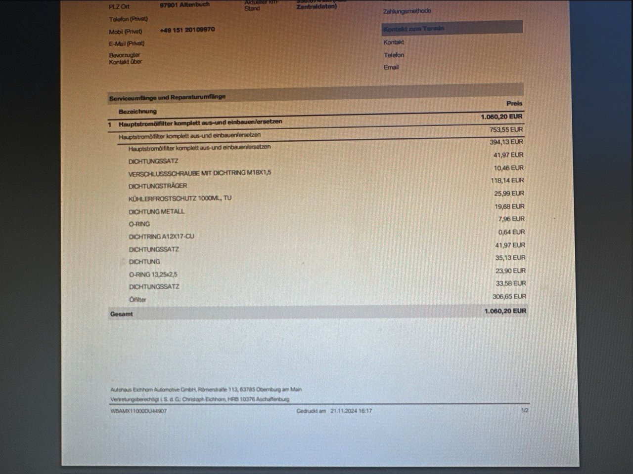 | 326 tkm | komplette Inspektion; ohne Kraftstoff |