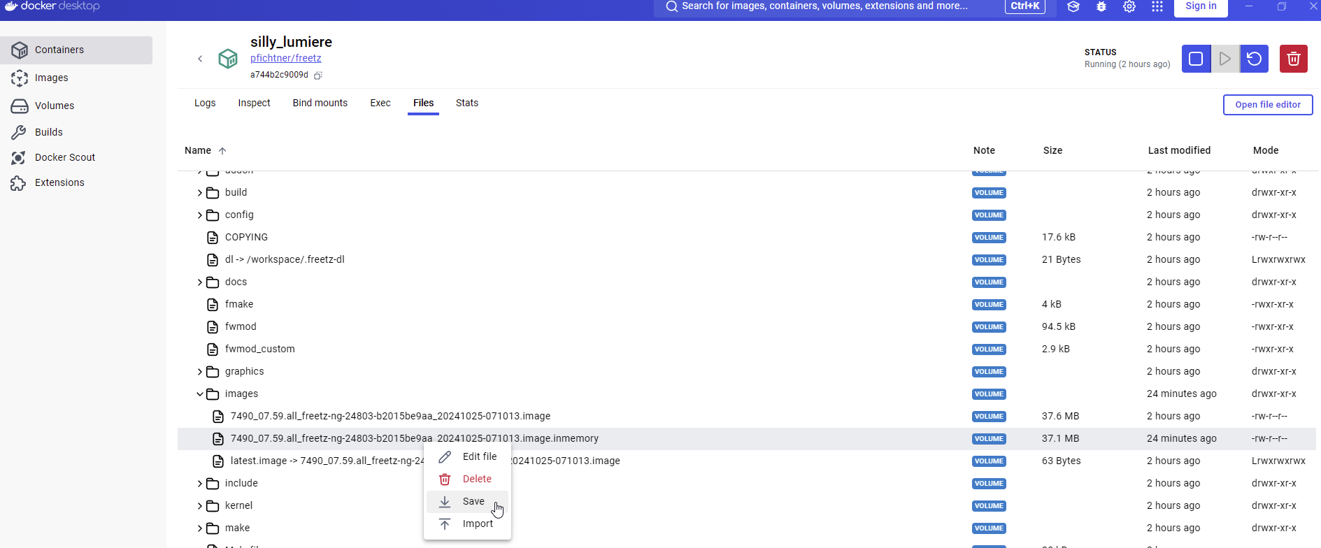 Das Image kann nun aus dem Container "exportiert werden"