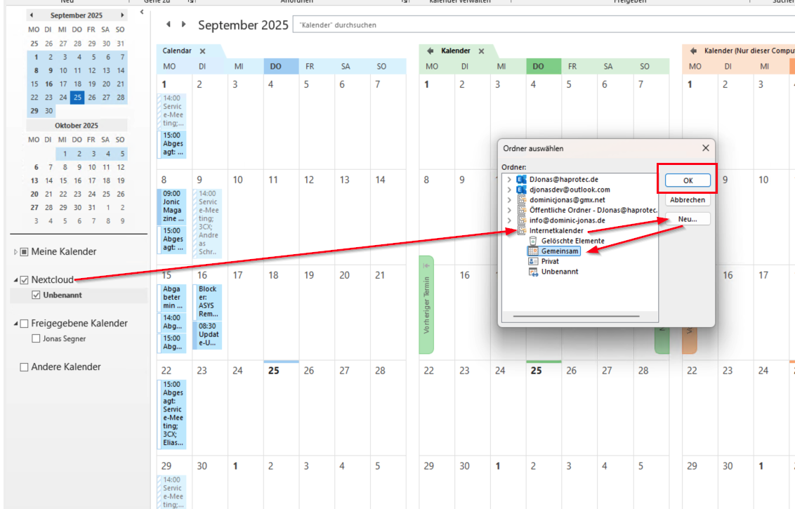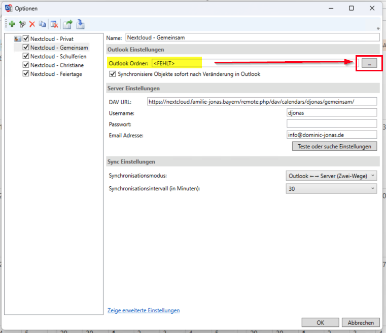 Nun kann im CalDac Synchronizer die entsprechenden Kalendergruppen erstellen und zugeordnet werden.
